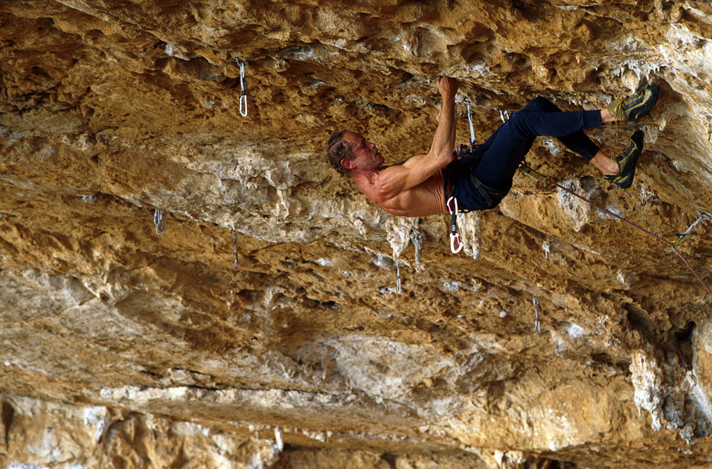 Mi alleno una o due volte la settimana, mi diverto a farlo. Non obbedisco a prescrizioni scientifiche, non tocco il Pan Gullich, faccio molte prese su tetto, medie e grandi, poi reggo un po’ di tacche con del sovraccarico cercando di migliorare la forza delle singole dita. Una seduta mi consuma più di una giornata a scalare. E’ bello scoprire che ci sono margini impensati di miglioramento anche tardi, è bello inoltrarsi in questa magnifica macchina del corpo che ci è stata fornita dal massacrante lavoro delle innumerevoli generazioni. Io sento di stare nelle ossa di un prototipo messo a punto da un’officina di millenni. Più m’inoltro e più si rivelano funzioni nuove, comprese quella di poter essere più efficiente adesso di quando avevo vent’anni. Sono un esploratore delle mie quattr’ossa.