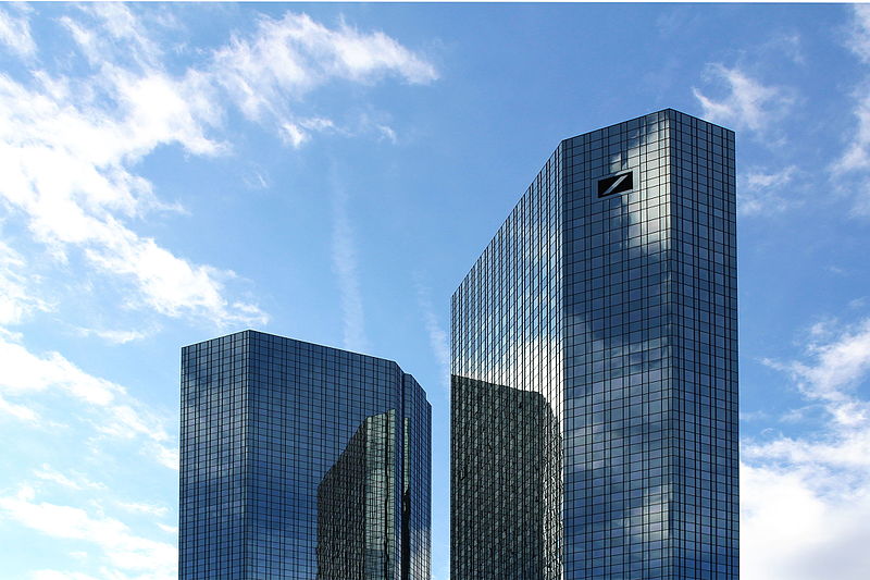 La sede di DB a Francoforte. Foto: Nordenfan Commons WikimediaLa battaglia della Brexit, insomma, si gioca anche sui prodotti strutturati e la posta in palio, ovviamente, è la quota di mercato che Londra rischia di lasciare dietro di sé. Un conto salato a giudicare dalle stime di Bloomberg secondo la quale i derivati denominati in euro scambiati nella City ogni giorno ammonterebbero a oltre 500 miliardi, una somma enorme su cui gli intermediari incassano le commissioni. La capitale britannica, sosteneva alla fine del 2016 Sky News, copre da sola il 70% del clearing globale sugli euro-derivati; Parigi, seconda in classifica, si ferma all’11%.