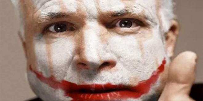 Il suo “martirio” come prigioniero di guerra gli aveva spianato la strada della carriera politica, prima al Congresso, poi al Senato. Per tutta la sua oscenamente lunga carriera politica, McCain ha fatto il possibile per far sembrare la “democrazia” americana una vera barzelletta e accelerare il collasso dell’America. Tutto questo, tra l’altro, non è stato assolutamente un compito arduo: è da molto tempo che la “democrazia” americana è una cloaca, il campo d’azione di lobbisti e ‘tecnici’ della politica, basata su un sistema di elezioni-farsa in collegi elettorali disegnati ad hoc. Ma ha fatto la sua parte, e per questo, è due volte un eroe.