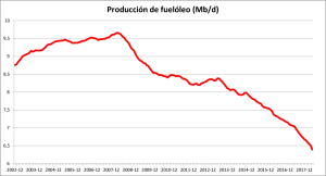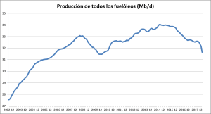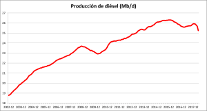 I seguaci di quella religione che si chiama liberalismo economico insisteranno a pieni polmoni che ciò che si vede qui è un picco della domanda, quella vecchia fallacia che non regge con i dati (chi pensa che qualcuno stia smettendo di consumare olio perché lo vuole, crede che ci siano alternative migliori?). Sosterranno che c’è una minore domanda di gasolio ed è per questo che la produzione ristagna e che la produzione di oli combustibili diminuisce perché, poiché sono più inquinanti, le nuove normative ambientali non ne consentono l’uso. È un po ‘il vecchio problema di chi è venuto prima, l’uovo o la gallina. Per quanto riguarda il fatto che la domanda di gasolio non aumenta, il suo prezzo ha un’influenza considerevole: è così che le carenze sono regolate in un’economia di mercato. E per quanto riguarda le ragioni ambientali, la produzione di gasolio pesante scende dal 2007, quando non c’era un interesse a regolamentarlo, come sembra esserlci ora.