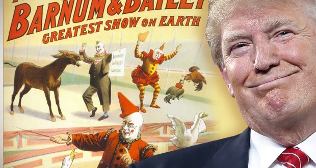 Barnum, che aveva imparato da bambino nel Connecticut i subdoli inganni dei venditori ambulanti e dei commessi viaggiatori yankee, aveva anche costruito i primi templi per celebrità, tra cui, nel 1841, l’American Museum di New York, che Twain aveva definito “una enorme rivendita di noccioline“, dicendo di sperare che “qualche filantropo” l’avrebbe dato alle fiamme. Barnum è stato il sommo sacerdote della religione politeistica e laica degli Americani e il creatore del kitsch come estetica, le caratteristiche che definiscono Trump. Trump ha costruito templi per le celebrità e per sé stesso, tra cui il casinò Trump Taj Mahal ad Atlantic City e Trump Towers in diverse città. Trump, come Barnum, ha capito che le celebrità e le loro reliquie funzionano nella cultura americana come totem e talismani magici. Come già aveva fatto Barnum, si rivolge alla volgarità della folla, nobilitando ciò che è volgare e lussurioso, con la pretesa che si tratti di cultura e di arte.