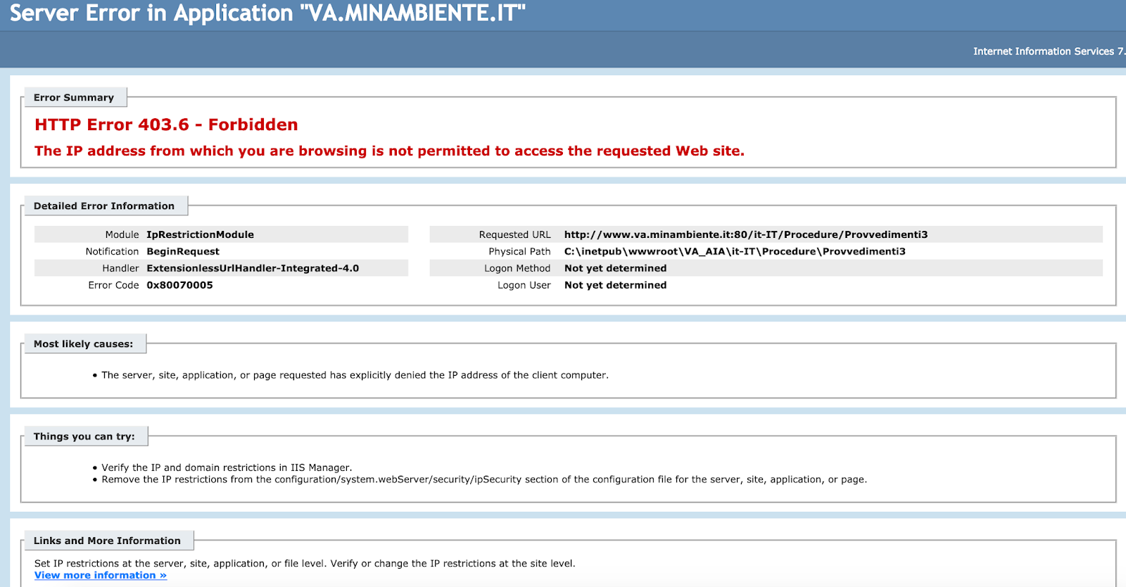PS: Anche le pagine del Ministero dell’Ambiente sono state oscurate. Ecco qui cosa compare