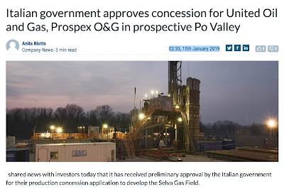 Adesso tutto questo affetto viene riversato sulla concessione Podere Gallina e sul campo Selva Malvezzi non lontano da Bologna. Il giorno 15 Gennaio 2019 quelli della Po Valley dicono di avere ricevuto una prima autorizzazione a trivellare il loro primo pozzo produttivo.