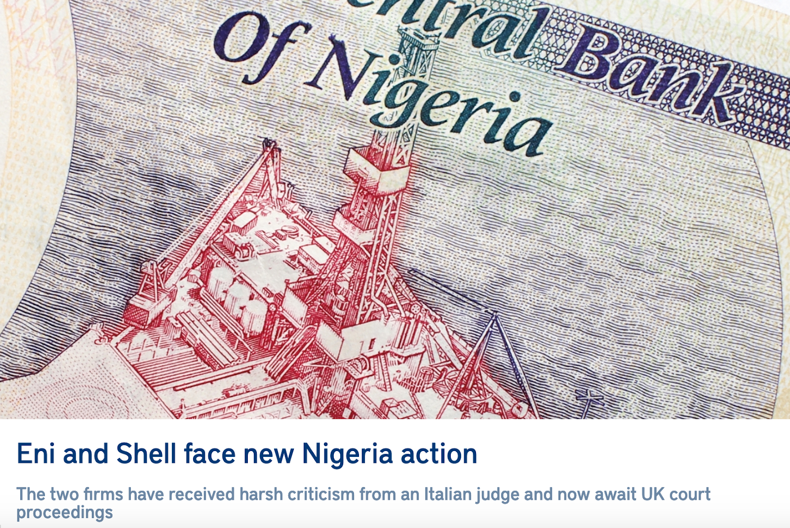 I nigeriani chiedono $1.1 miliardi contro i due petrol-giganti-imbroglioni che a loro dire *sapevano* di star pagando tangenti private per cose illegali.