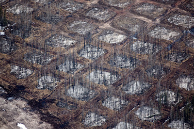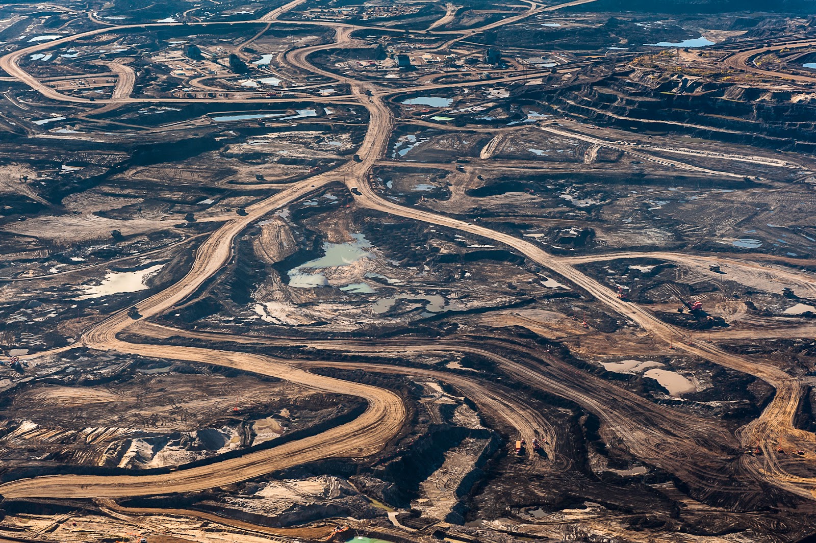 Come detto in passato qui non si estrae vero petrolio, ma *sotto* la foresta borale c’e’ roccia bituminosa impregnata di petrolio che deve essere trattato in modo chimico e altamente impattante per *spremere* poche gocce di petrolio. I trattamenti sono intensi e per ogni barile di petrolio prodotto dalle Tar Sands, siccome deve arrivare dal trattamento estremo di sabbie bituminose, ce ne vogliono dai sei ai dodici in totale di acqua fresca, che diventano poi monnezza tossica.