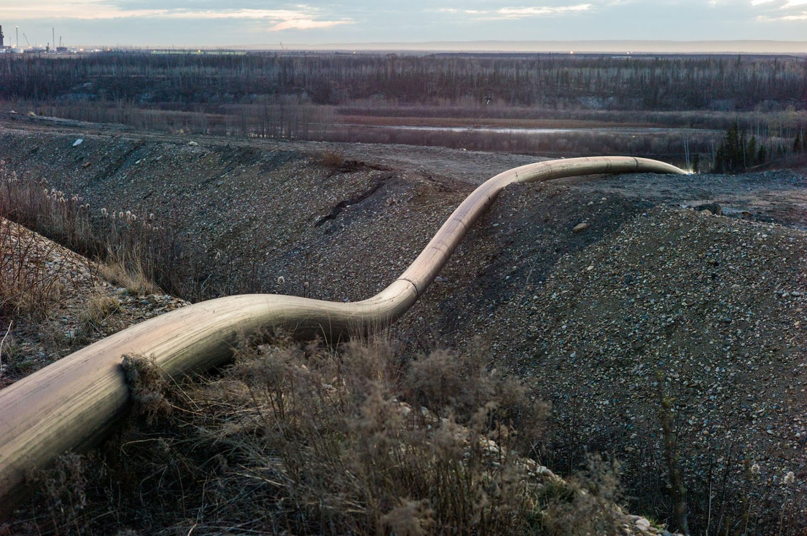 Le Tar Sands del Canada, un angolo remoto a nord del paese avvolto un tempo da neve e ghiaccio e distese di bianco e’ ora coperto di raffinerie, terreni violentati, fumi e puzze.