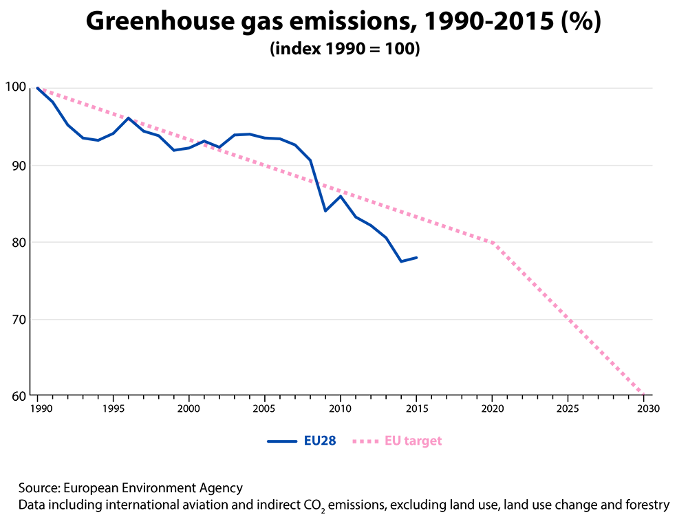 Prendiamo ad esempio l’Europa che è il paese che ha maggiormente ridotto le sue emissioni: