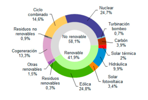 Per la precisione siamo al 40.3% di energia elettrica da rinnovabili secondo i dati forniti dalla Comisión Nacional de los Mercados y la Competencia, una specie di controllore dei mercati del paese.