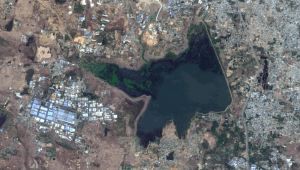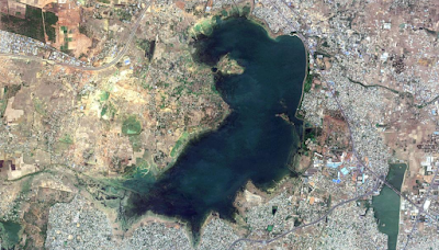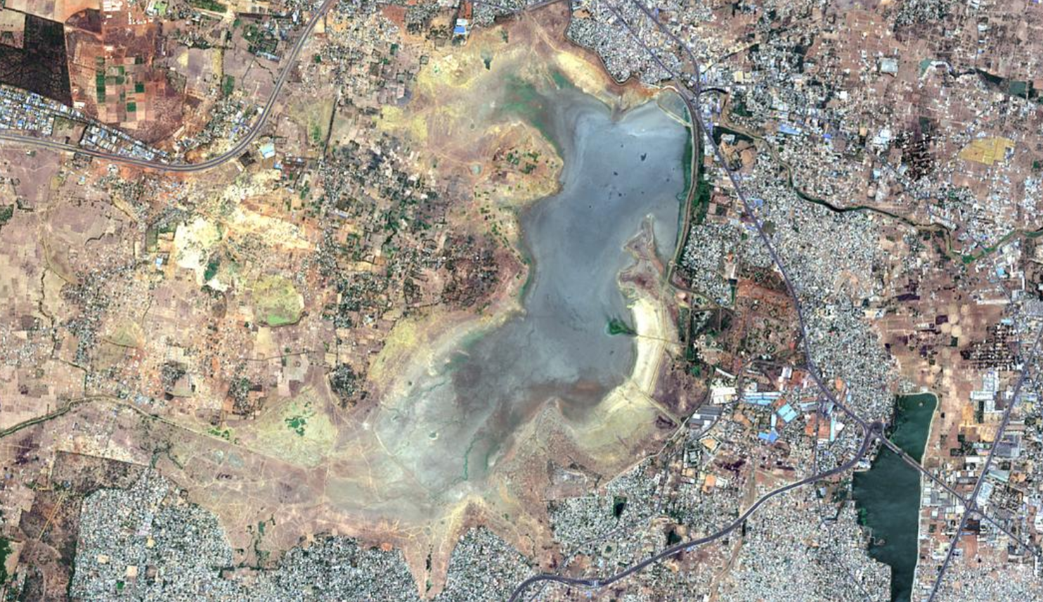 Il fatto resta che .. tutti e quattro i bacini idrici del circondario sono vuoti. E questo viene pure confermato dalle immagini da satellite, che mostrano il piu’ grande di questi bacini, il lago Puzhal,