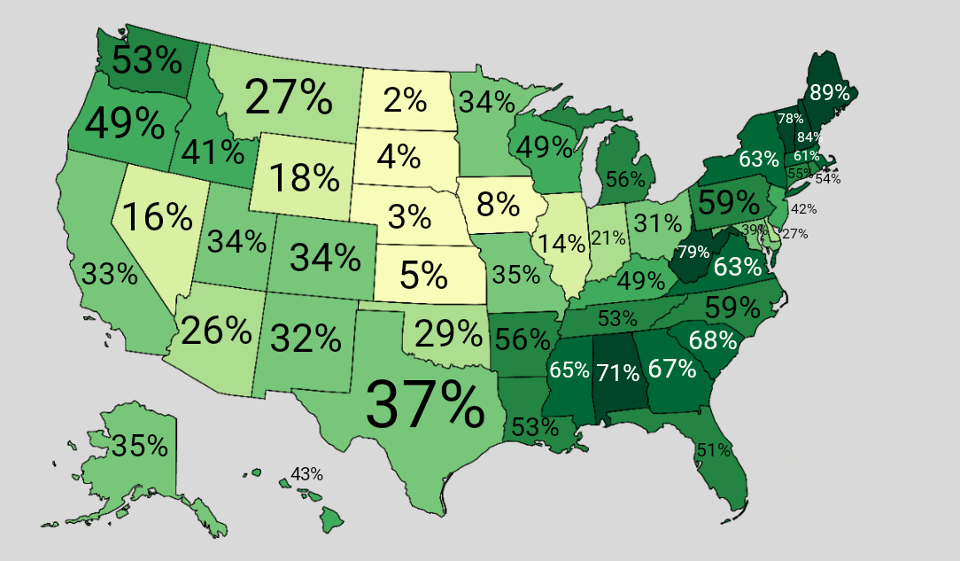 Si passa per esempio dall’ 89% di copertura forestale in Maine al 2% del South Dakota.