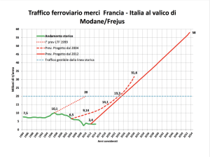 L’aumento previsto dai proponenti il TAV del traffico merci di dieci volte su ferrovia e di 1,6 volte tramite strada entro il 2035 [23 ] deve essere abbinata alla quasi certa decisione di implementare una soluzione più economica per il TAV, ovvero la sola la costruzione della galleria di base ( 57 km) e il suo collegamento alla vecchia linea: ciò significa che , considerando la capacità di quest’ultima (20 Mton / anno), ulteriori 19,9 Mton / anno dovranno fluire attraverso l’autostrada del Frejus , invece di essere trasportati via ferrovia , per un totale quindi circa 52,3 Mton / anno su camion.