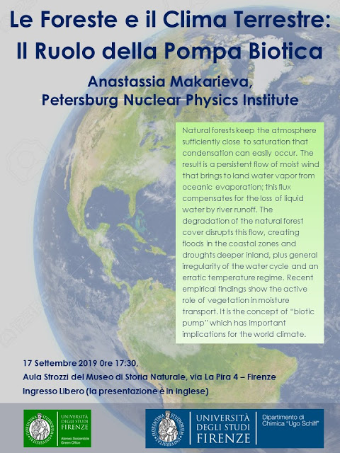 Siamo sicuri però che non abbiano invece ragione loro? Ovvero che non è solo un problema di CO2 ma anche di altri fattori? Non è che abbiamo bisogno di un cambiamento radicale di strategia invece di insistere con le “soluzioni” proposte fino ad ora, tipo la carbon tax? Di questo, ne parliamo con Anastassia Makarieva a Firenze il 17 Settembre. E vediamo se riusciamo a capirci: ne va della sopravvivenza di un intero ecosistema planetario.