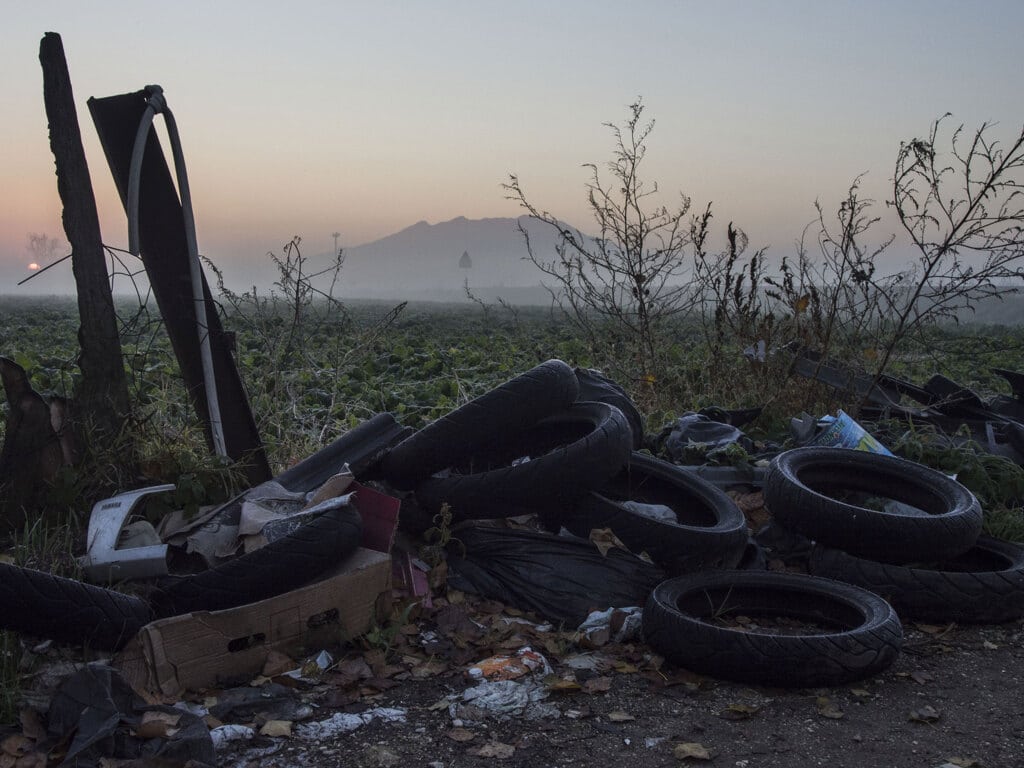 In dieci anni di esplorazioni ha trovato di tutto: pneumatici, teloni di plastica usati per coprire le serre, pannelli di eternit, strisce di cuoio e altri scarti delle decine di laboratori calzaturieri e tessili che lavorano per le grandi griffe e per l’industria del falso. Per questo si è convinto che le discariche abusive e i roghi non siano altro che il “sintomo di un sistema industriale malato”.