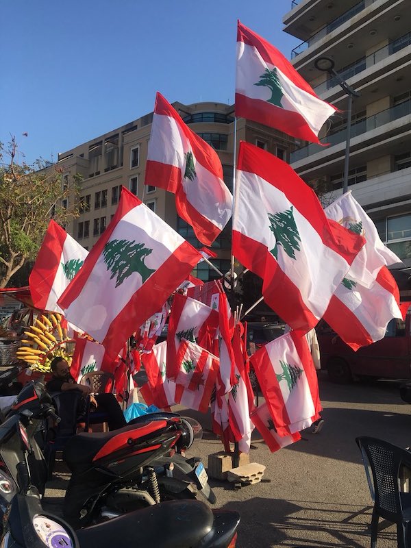 Foto 3: Boom di vendita di bandiere libanesi, un altro segno della volontà diffusa di superare settarismi e divisioni imposte da leader religiosi e gruppi d’interesse