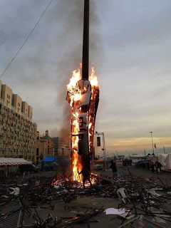 Nelle stesse ore, i principali leader politico-confessionali si erano invece riuniti nel compound fortificato del ministero della difesa nella località di Yarze, fuori Beirut, per assistere una parata militare simbolica. Una separazione fisica che racconta di una nomenclatura sempre più estranea, e ostile, al popolo di Piazza dei Martiri, cuore della rivoluzione laica dei libanesi. Per i libanesi. *Foto 1: Il simbolo della rivolta libanese dato alle fiamme dagli squadristi di Hezbollah