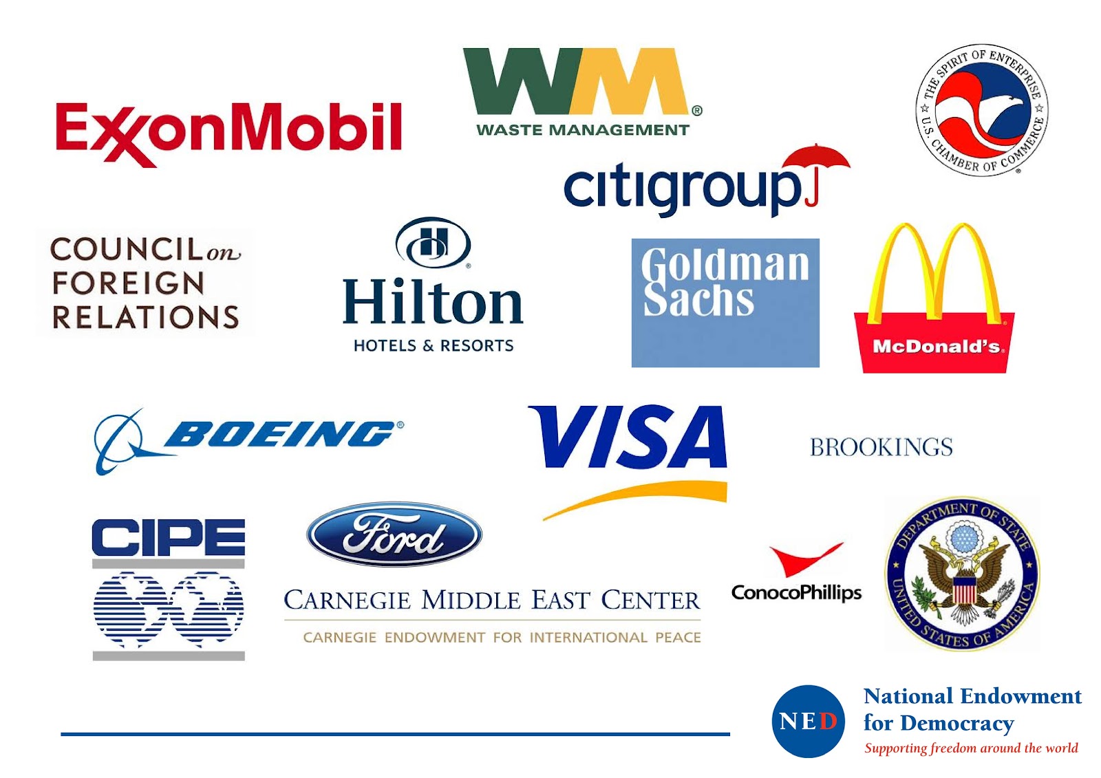La pagina web attuale del National Endowment for Democracy (NED) degli Stati Uniti ammette di interferire ampiamente in ogni aspetto immaginabile degli affari politici interni del Venezuela con fondi diretti a: