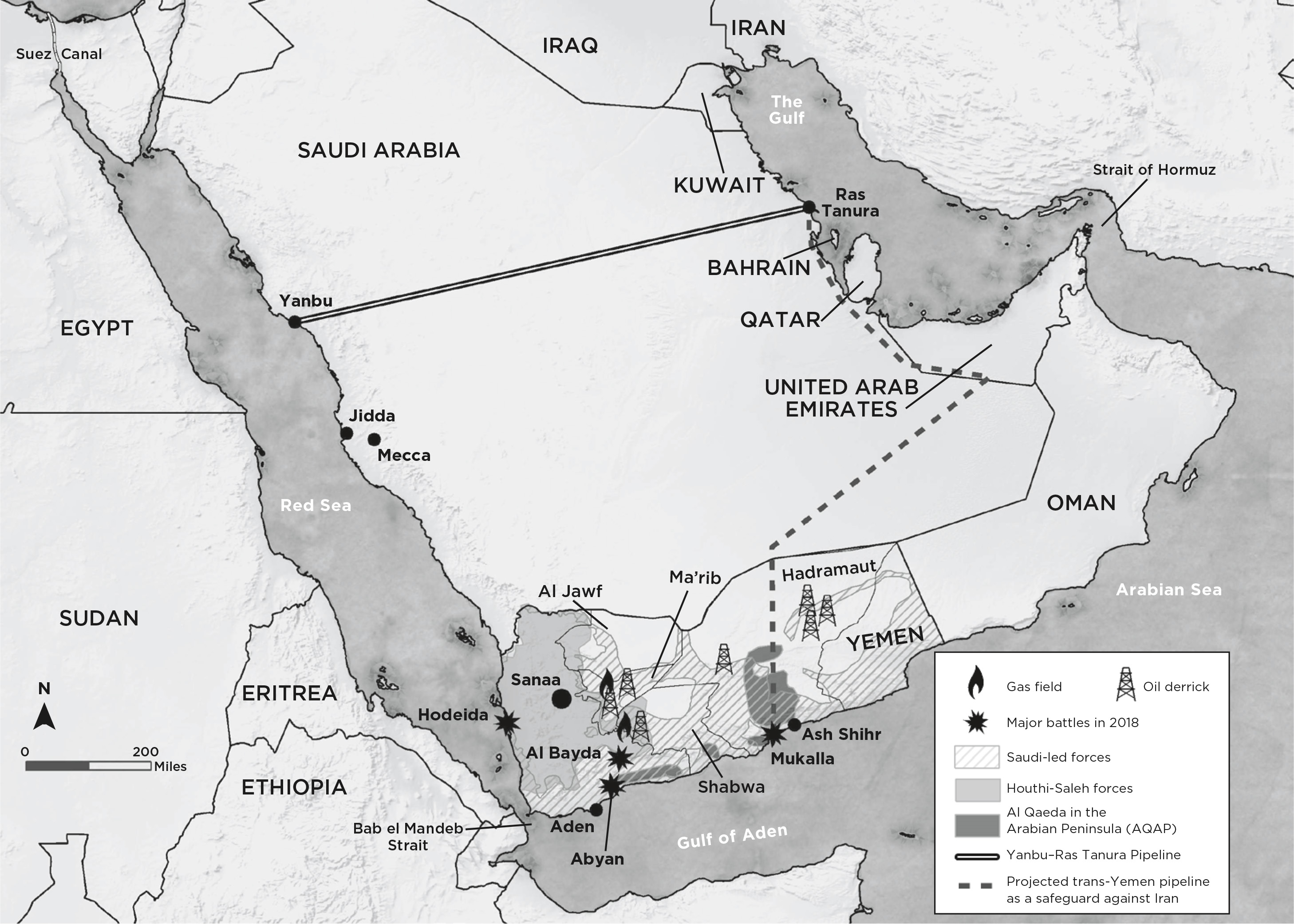 Il fatto è che lo Yemen sta nuotando nel petrolio . Altrettanto significativo, la principale preoccupazione del principe ereditario è stata la ” libertà di navigazione “ per le petroliere che trasportavano petrolio saudita, sia che attraversassero lo Stretto di Hormuz, uno stretto chokepoint sul fondo del Golfo Persico / Arabo che separa l’Arabia Saudita orientale dall’Iran o lo stretto di Bab el Mandeb sul lato occidentale della penisola saudita. Nel 2015 sono sorti problemi, quando i ribelli Houthi appoggiati dagli sciiti hanno acquisito il controllo di gran parte dello Yemen settentrionale, espulso il loro leader filo-occidentale corrotto e preso il controllo della capitale dello Yemen. Successivamente iniziarono ad avanzare nella provincia produttrice di petrolio di Ma’rib e oltre, verso lo stretto di Bab el Mandeb. Per alleviare queste preoccupazioni, l’Arabia Saudita ha intrapreso la costruzione di un oleodotto– nonostante le proteste locali – che trasporterà il suo petrolio direttamente nel porto di Mukalla, nel sud dello Yemen, nel Golfo di Aden, evitando i due punti critici.