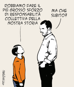 La vignetta – scelta dalla “bottega” – è di Mauro Biani