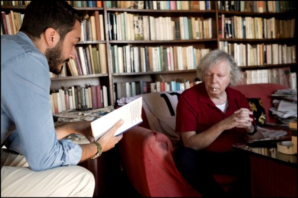 Nulla è cambiato e tutto è rimasto dov’era, in un caos ordinato: il divano rosso che ha accolto tante confessioni è sempre lì, così come le poltrone (su una di esse è appoggiata una maglietta con scritto “Onore al mullah Omar”, il capo talebano morto nel 2013), le macchine da scrivere Olivetti appoggiate per terra e le librerie ordinate per argomenti. E poi tanti giornali, affastellati uno sopra all’altro: per terra, sui tavolini, sul divano. Il lavoro di una vita. Carta e inchiostro. E Gauloises rosse a cui strappare il filtro per succhiarne il contenuto. In questo spazio senza tempo ci accoglie Massimo Fini.