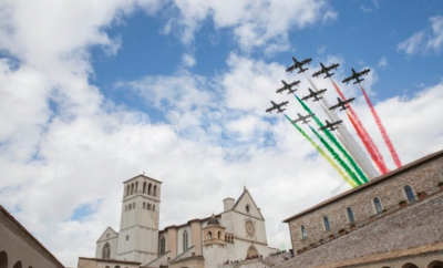 A sorvolare Assisi, l’anno prossimo, saranno i nuovi, più potenti caccia da addestramento avanzato T-345A prodotti dalla Leonardo, di cui l’Aeronautica sta acquistando 23 esemplari con una spesa di circa 380 milioni di euro. Essi assicureranno una migliore «efficacia addestrativa», preparando i piloti all’uso degli F-35 e altri aerei da guerra.