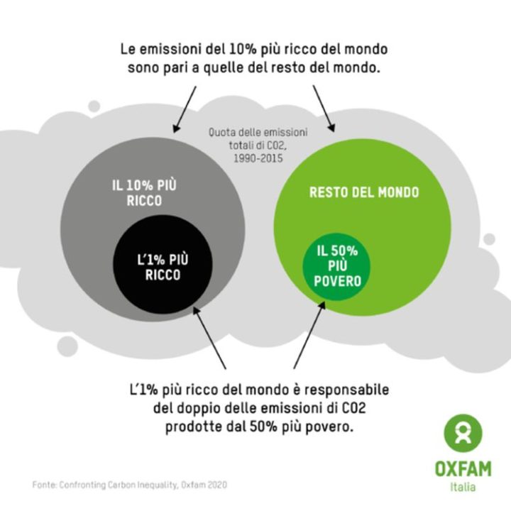 Secondo Oxfam, da ciò discende il fatto che per raggiungere livelli in linea con gli 1,5 gradi nel 2030 sarà necessario puntare soprattutto su misure pensate a contenere il peso dei più ricchi attraverso politiche ambientali radicali che pongano fine ai finanziamenti pubblici ai combustibili fossili, che impongano una tassazione specifica sulle emissioni legate ai beni di lusso, puntando sull’efficienza energetica.