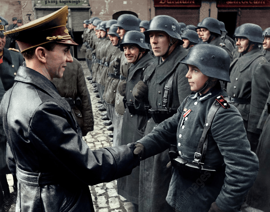 Goebbels con i soldati del Volksturm a Lauban, in Slesia, 1945