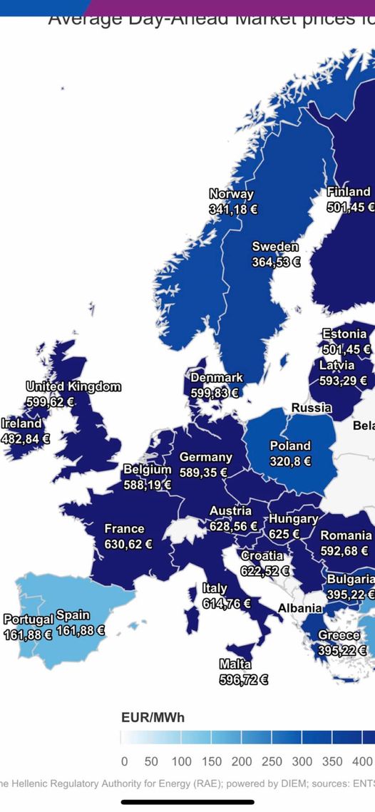 La Francia nuclearizzata ha prezzo energia più alto: 630 €/MWh .