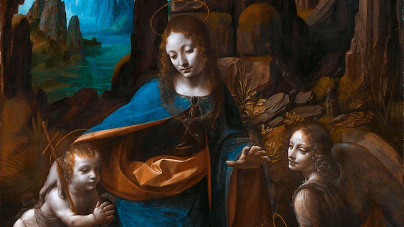 Estratto da La Vergine delle Rocce di Leonardo Da Vinci nella versione presente alla National Gallery di Londra.