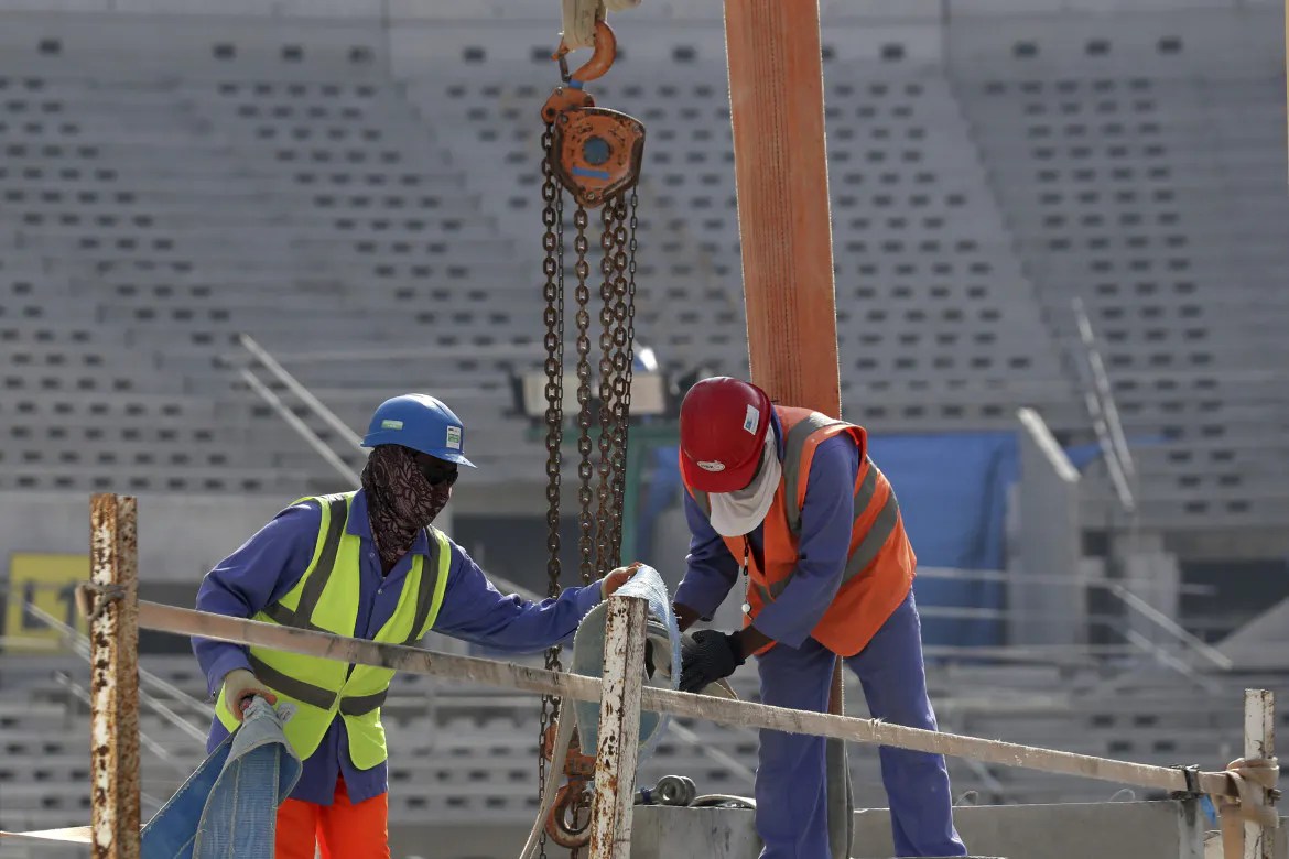 Si stima che 30mila salariati siano stati impiegati per la costruzione delle infrastrutture per ospitare i mondiali di calcio. Lavoratori letteralmente tenuti in ostaggio delle compagnie da cui sono assunti, le quali pagano loro salari miserrimi, impongono condizioni di lavoro proibitive, nessuna assistenza sanitaria negando i più elementari diritti.