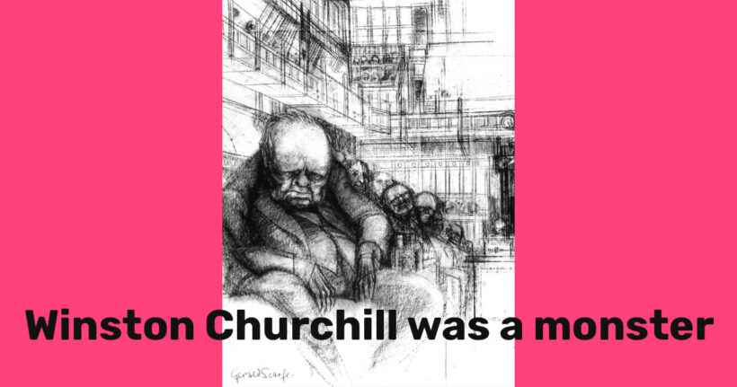 Per tutta la sua vita Churchill fu un fiero, impenitente sostenitore del razzismo, del colonialismo, del genocidio, del militarismo, delle armi chimiche, delle armi nucleari e della crudeltà in generale, e per di più sfacciatamente arrogante su tutto questo. Era un feroce oppositore di qualsiasi uso o sviluppo della democrazia, dall’estensione del voto alle donne in su. Era parecchio odiato, spesso fischiato e contestato, e talvolta violentemente attaccato, sia nell’Inghilterra del suo tempo che in gran parte del resto del mondo, per i suoi reazionari abusi nei confronti dei lavoratori, compresi gli operai delle miniere in sciopero contro i quali impiegò l’esercito, per non parlare dell’atteggiamento guerrafondaio.