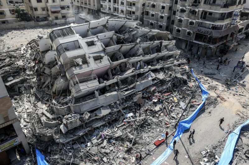 Immagine in apertura: bombardamenti sulla striscia di Gaza, i resti della torre Al-Aklouk