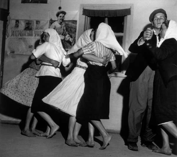 “L’energia di queste giovani donne era incredibile. Per tutta la giornata, fin dall’alba, avevano lavorato nei campi e, dopo una sola ora di sonno, erano pronte a ballare tutta la notte.” È nella fattoria Shevchenko (praticamente un nome che diventa icona dell’Ucraina) che lo scrittore e il fotografo si immergono nelle festanti notti dei giovani lavoratori e lavoratrici. A riempire la serata il ballo e il teatro. In questo caso era “una piccola commedia di propaganda, ingenua ma ben fatta”, che finisce tra le risate di un pubblico che non vedeva l’ora di lasciarsi alle spalle la guerra, per accogliere un futuro che non poteva che essere radioso. Oggi come allora, si vive tra la realtà e la finzione, lì dove la finzione diventa una simbolica via d’uscita dalla crudezza della realtà. Se nei racconti di Steinbeck e nelle foto di Capa la via era ormai in discesa, oggi la strada degli ucraini è ancora incerta. Rimangono le testimonianze e i racconti del passato e i loro intrecci col presente. Il popolo che cambia nemico ma lo affronta allo stesso modo, con l’ansiosa ricerca di non smarrire la propria esistenza sotto la catastrofe della guerra, con la certezza che tutto questo verrà presto consegnato alla storia.