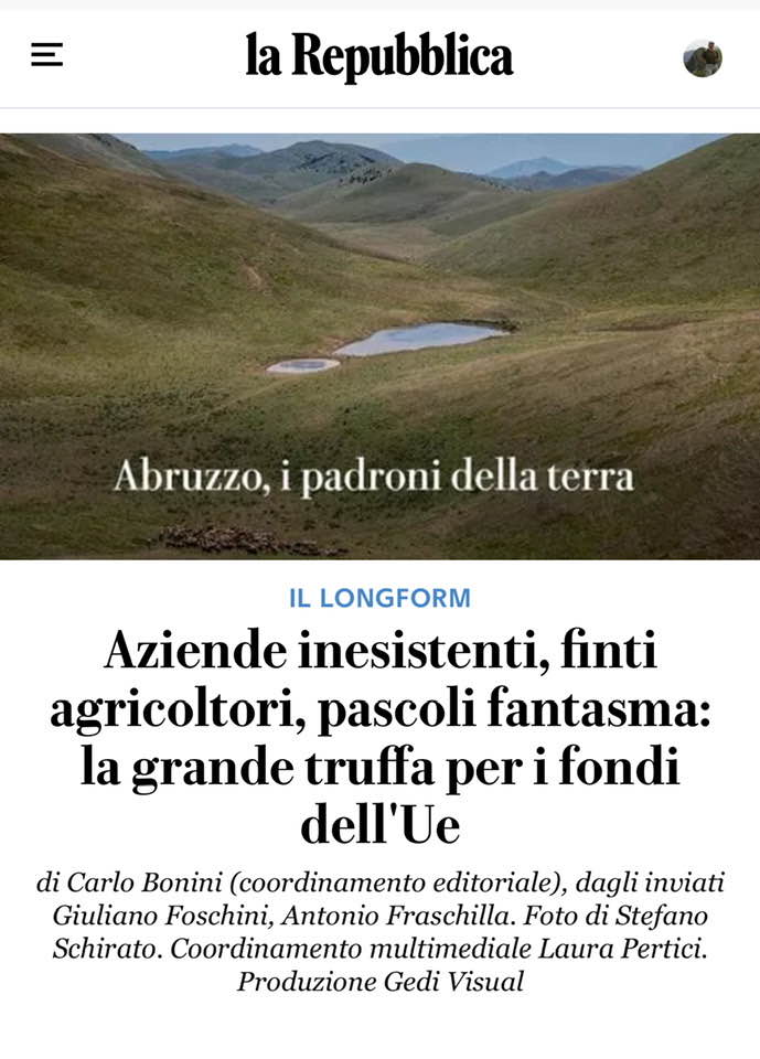 “L’Aquila. Due cani randagi si aggirano nella stradina provinciale che da Ofena sale verso Campo Imperatore. Tutto intorno terreni incolti che si alzano e scendono fino ad arrivare alle pendici del Gran Sasso. Eppure qui dovrebbe esserci un gran viavai di trattori, carri bestiame, macchinari e agricoltori. Sulla carta per ettari ed ettari a perdita d’occhio questi campi risultano coltivati a livello intensivo oppure destinati a pascoli di grande mandrie di bovini. E invece qui non s’incontra anima viva per chilometri fino ad arrivare alla grande spianata sotto il Gran Sasso, dove si intravede l’albergo abbandonato che per qualche giorno fu la prigione di Benito Mussolini dopo la resa dell’Italia fascista agli alleati. Ottanta anni dopo in queste contrade desolate sta accadendo qualcosa di strano. La prima ad accorgersene è stata una docente di Geografia dell’Università de l’Aquila, Lina Calandra: dal suo ufficio che si affaccia su queste vallate anche lei non ha visto quel gran movimento che invece dovrebbe esserci.
