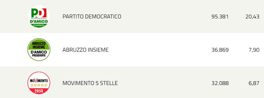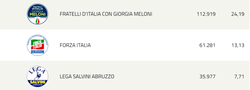 Dunque anche in Abruzzo vince la Dx, anzi si rafforza con un nuovo mandato, ma con solo per il 52,87 % dei votanti, cioè la coalizione di dx vince con il 43% circa del totale votanti.