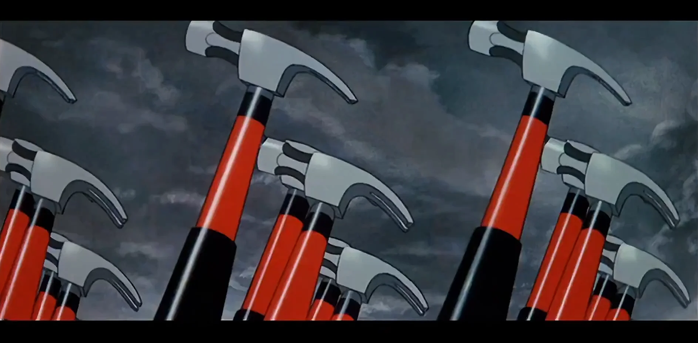 “Per comprendere a fondo le tre dimensioni dell’alienazione sotto la società capitalista, l’esempio perfetto è quello della marcia del video musicale di Another Brick in the Wall dei Pink Floyd: tutti gli umani si trasformano in martelli e poi fanno una marcia al passo dell’oca. Individui fondamentalmente capaci di espressione creativa vengono trasformati in martelli, oggetti capaci di un solo gesto ripetitivo, e determinato da altri e non da loro stessi. Sono inoltre costretti a marciare allo stesso passo dell’oca all’unisono, dunque in una forma di standardizzazione totale, in cui chiunque è identico a chiunque altro”.