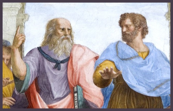 Tutto l’argomento, in termini di genealogia dei concetti, sta (vagamente) per certi versi in Aristotele, ma soprattutto non sta nella maniera più assoluta in Platone. Quella mano posta a metà tra cielo e terra quando Aristotele passeggia chiacchierando con Platone con l’indice puntato in cielo (come fanno quelli dell’ISIS) per dire che c’è un “solo” Dio, nella famosa Scuola di Atene di Raffaello, indica il regno di mezzo dove le cose si formano per interrelazione, impasto, amalgama. L’ontologia ne risente. In questa impostazione si danno i “possibili” ontologicamente reali (res potentia) e la “realtà” con gli ontologicamente reali (res extensa), Il mondo dei possibili è il mondo che poi alimenta il cambiamento, ma debbono esser possibili almeno “in potenza” per poi diventare “in atto”. A questo stato ci riferiamo quando diciamo di dover essere realistici. Non appiattiti sul reale, ma condizionati dalle più strette condizioni di ciò che può esserlo anche se ora non lo è ancora. Da cui anche l’utilizzo processuale del tempo. Le cose hanno e cambiano nel tempo.