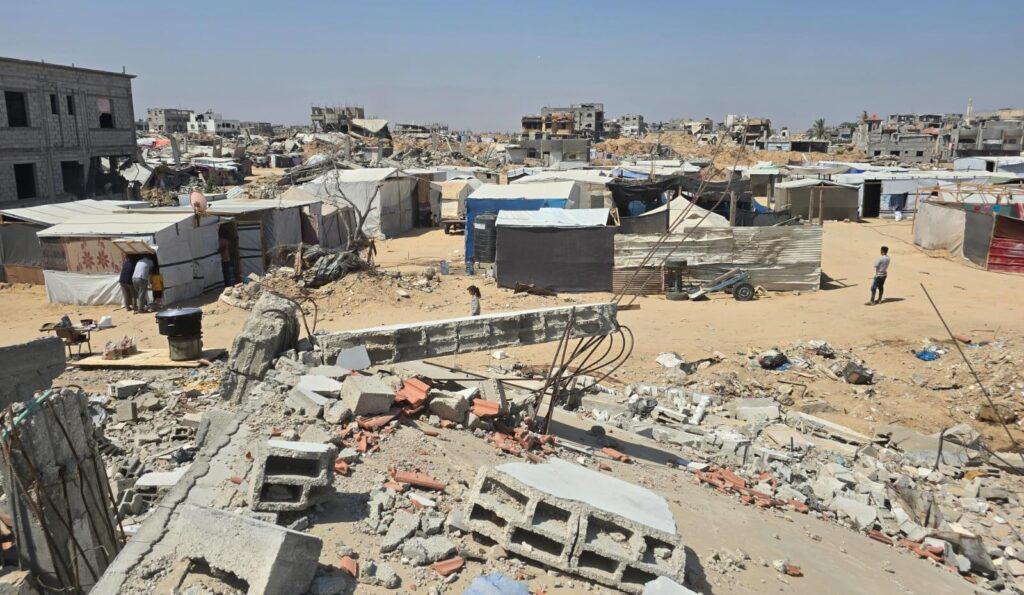 Città palestinese di Khan Younis, dove in questi giorni gli operatori di Acs e Gaza Freestyle hanno portato aiuti alimentari (link per donare)