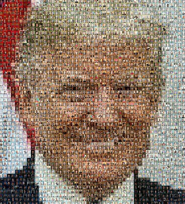 Fotomosaico della lista dei sostenitori della campagna presidenziale 2024 di Donald Trump, basato sul suo ritratto ufficiale. (Foto di Shealah Craighead. Wikimedia Commons)