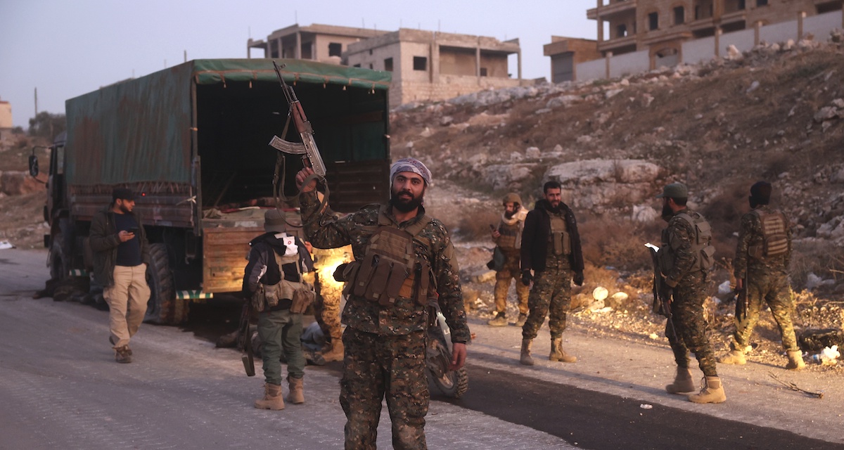 Combattenti ad Aleppo il 29 novembre 2024 (AP Photo/Ghaith Alsayed)