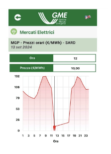 riporta il prezzo orario in Sardegna del 13 settembre 2024).
