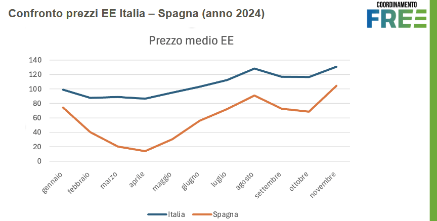 A riprova di ciò, se si confrontano i prezzi medi spagnoli e quelli italiani dell’ultimo anno si può evincere che quelli spagnoli sono stati di circa il 40% più bassi.