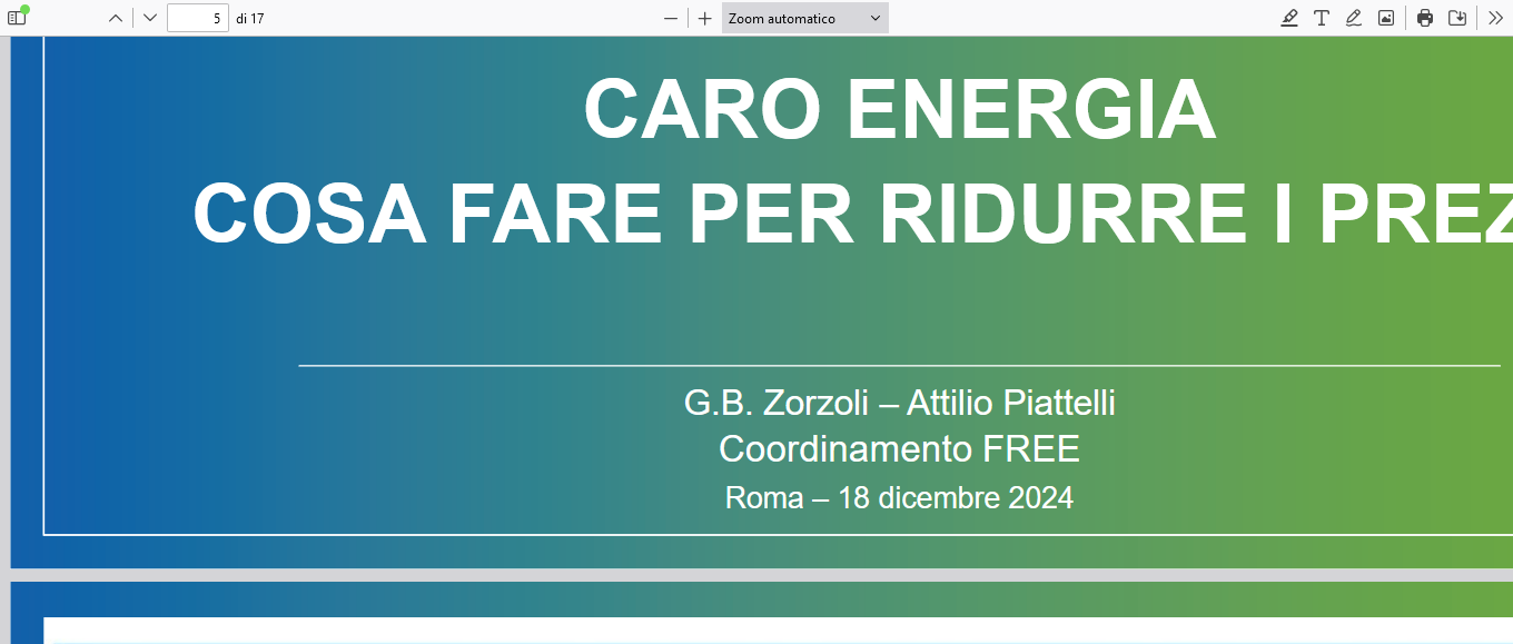 Riteniamo utile e urgente che il problema energetico nazionale salga in cima alla lista delle priorità dell’azione politica», ha affermato il presidente del Coordinamento FREE, Attilio Piattelli.