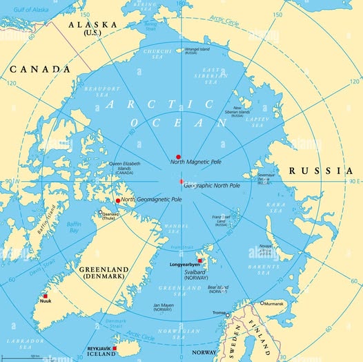 Ricordo che gli US sono considerati una nazione polare solo per una parte (nord) dell’Alaska, a suo tempo terra russa comprata dagli americani (1867). A sua volta, al sottosuolo del Polo Nord sono attribuite enormi riserve di petrolio, gas, palladio, nichel, fosfato, bauxite, terre rare e chi più ne ha più ne metta.