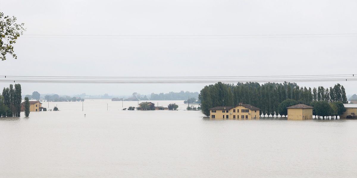 Campi allagati durante l’alluvione dello scorso settembre in Emilia-Romagna (Guido Calamosca / LaPresse )
