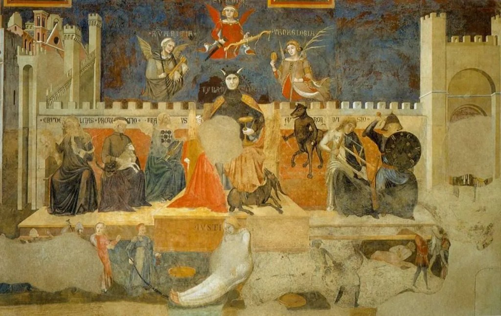 «Allegoria del cattivo governo», dipinta tra il 1338 e il 1340 da Ambrogio Lorenzetti, Palazzo pubblico di Siena. Foto Public Domain.