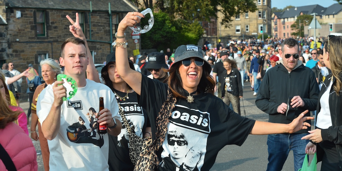 Quelli di venerdì 8, sabato 9 e martedì 12 agosto allo stadio Murrayfield sono i primi concerti degli Oasis in Scozia dopo 16 anni, e attireranno in totale oltre 200mila persone. Margaret Graham, responsabile della cultura e della comunicazione di Edimburgo, spiega che in passato in città c’erano stati concerti della stessa portata, come quelli dell’Eras tour di Taylor Swift, che nel giugno del 2024 si era esibita in città per tre sere: nessuno però era stato organizzato quando in città c’era già il Fringe.