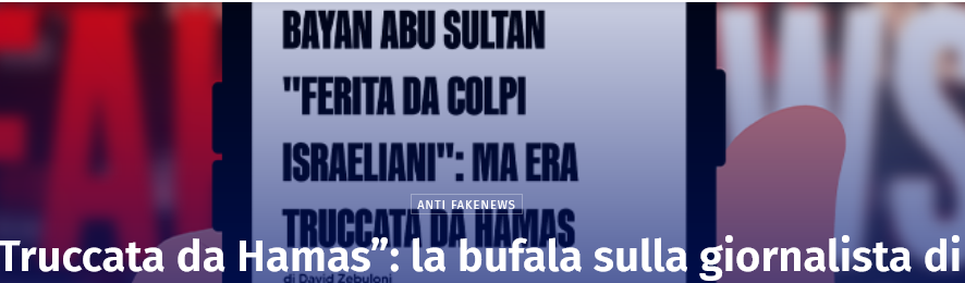Di fronte a una tragedia, la propaganda non si limita a distorcere la realtà: spesso la inventa. Questa volta con la regia dichiarata di un apparato organizzato e ideologico che ha come unico obiettivo il sabotaggio della verità. È il caso dell’ennesima bufala confezionata dal canale Gazawood e ripresa con entusiasmo dalla testata italiana Libero («Ferita dai colpi israeliani» Ma era Hamas a truccarla – sabato 5 luglio 2025), secondo cui l’attivista palestinese Bayan Abu Sultan sarebbe stata “truccata” in un finto backstage per fingere di essere una vittima dei bombardamenti israeliani a Gaza. Peccato che quella che viene spacciata come “prova” – un reel pubblicato il 30 giugno 2025 dall’account Instagram di Mohammed Abusalama – non solo non dimostri nulla, ma sia facilmente smentibile grazie a dati visivi, geolocalizzazioni, video da altre angolazioni e un minimo di logica, che però manca a chi ha interesse a falsificare la realtà.