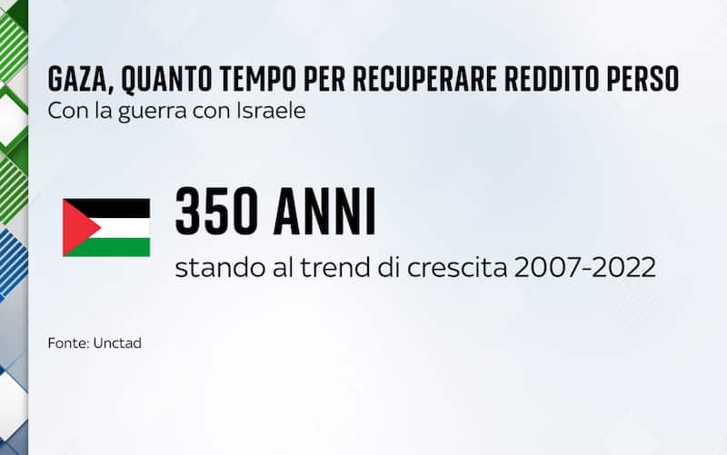 - Per recuperare il reddito perso a Gaza durante la guerra con Israele, stando al trend di crescita registrato tra il 2007 e il 2022, servirebbero 350 anni. Trump ha annunciato un piano di sviluppo e dazi più bassi per chi andrà a investire, ma sicuramente la ricostruzione sarà una missione difficile.