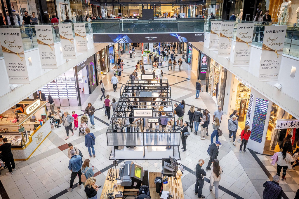Le persone fanno acquisti al centro commerciale Ayalon durante la vacanza di Pasqua, a Ramat Gan, il 14 aprile 2025. (Miriam Alster/Flash90)