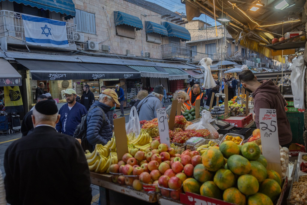 Acquirenti al mercato di Mahane Yehuda a Gerusalemme, 09 dicembre 2025. (Chaim Goldberg/Flash90)